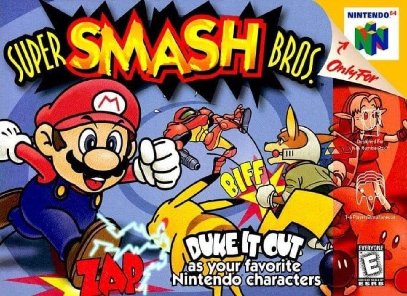 DescriptionSuper Smash Bros. brings together beloved characters from across the Nintendo universe for the ultimate battle experience. Whether you’re teaming up or facing off in Free-For-All, up to four players can unleash signature moves and strategize in intense, fast-paced matches. For solo players, the game offers a thrilling single-player mode with 14 unique stages to conquer, challenging your skills and reflexes. With its dynamic gameplay and endless replay value, Super Smash Bros. delivers nonstop excitement and competitive fun that will keep you and your friends engaged time and time again. |