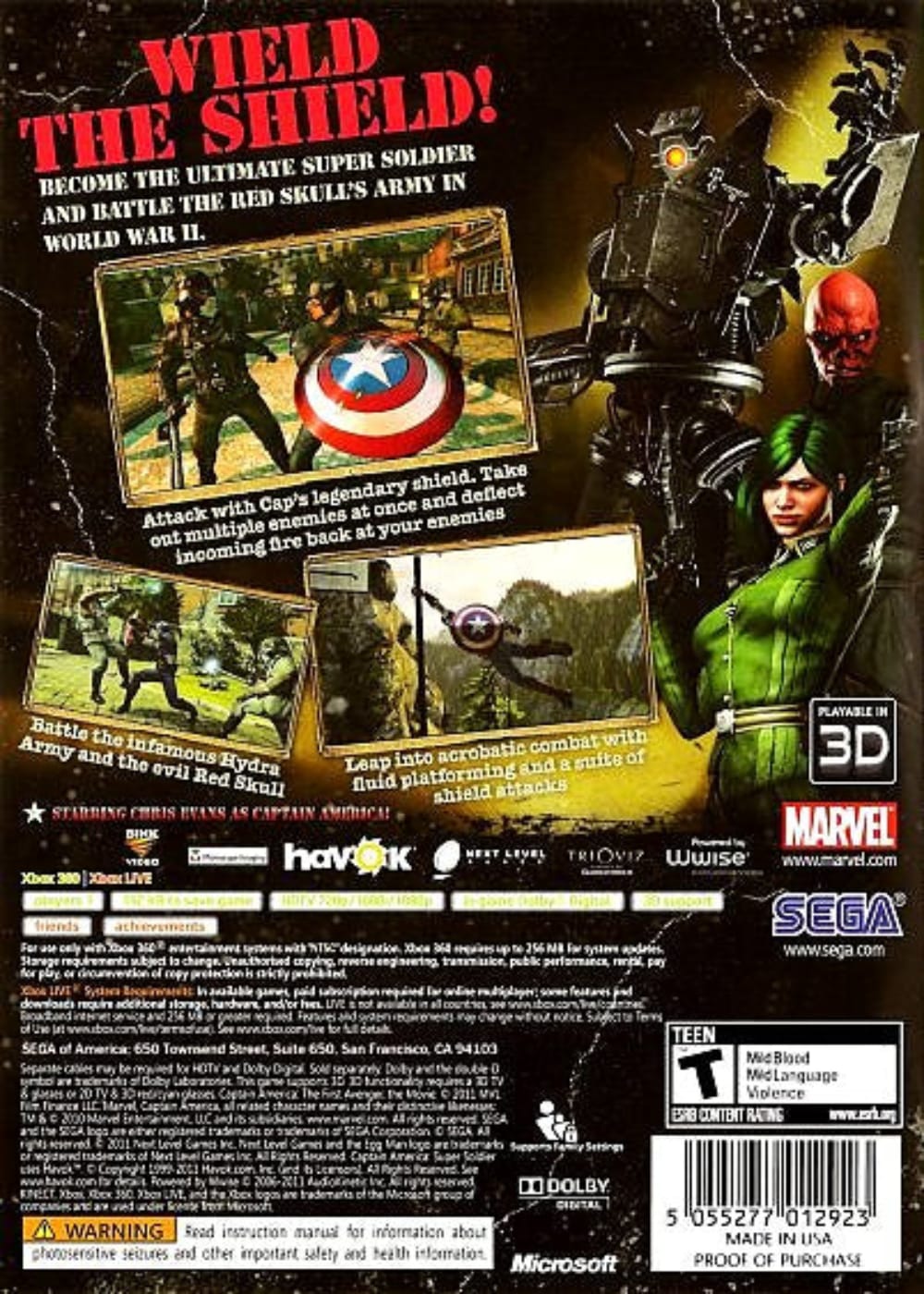 DescriptionCaptain America: Super Soldier is an action-packed game that puts you in the boots of the world's first Super-Soldier. Master an athletic combat system combined with fluid platforming as you navigate a massive castle turned military installation. Wield Captain America's iconic shield in multiple ways—strike multiple enemies at once, deflect incoming fire, solve environmental puzzles, and scale towering walls. Every room presents new acrobatic challenges and dangers that demand the full force of your Super-Soldier abilities to overcome. |